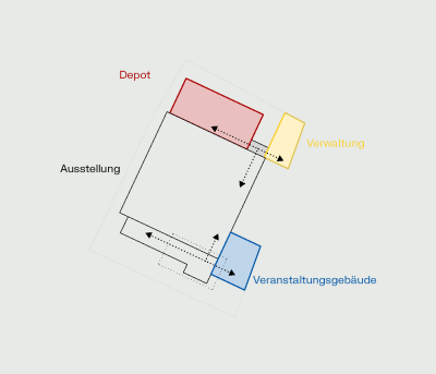 Alle internen, das Museum unterstützenden Funktionen werden neu organisiert, um einen effizienten, langfristigen und zukunftsfähigen Betrieb zu gewährleisten. Ein besonderer Schwerpunkt der Planung liegt auf der Nachhaltigkeit sowie auf der Reduzierung der Betriebs- und Lebenszykluskosten. Insbesondere bei dem geplanten Depot-Neubau wird durch eine robuste Gebäudekonstruktion und Materialwahl und eine optimierte Grundrissorganisation der Einsatz technischer Anlagen auf das notwendige Maß reduziert. Bewusst gewählte Klimakorridore, passive bauphysikalische Strategien und klar zonierte Raumstrukturen tragen dazu bei, den Energiebedarf zu minimieren, Wartungsaufwand zu senken und zugleich stabile konservatorische Bedingungen für die Kunstwerke sicherzustellen.