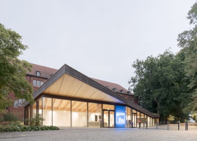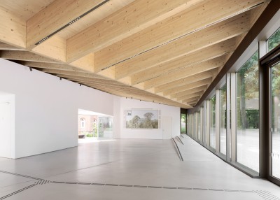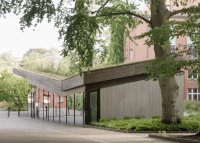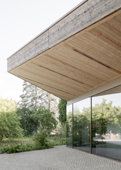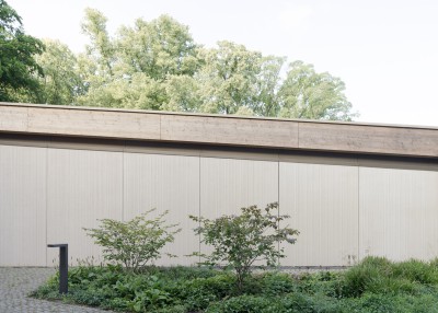 Durch die bewusste Vermeidung einer urban gegliederten Formensprache entsteht eine aufgelockerte Eingangssituation, in der Gebäude und Garten gleichberechtigt im Dialog stehen. Dabei wird eine neue Schwellensituation zwischen der Stadt, den teilöffentlichen Funktionen und dem Garten mit Museum gebildet über welche die einzelnen Bereiche betreten werden.