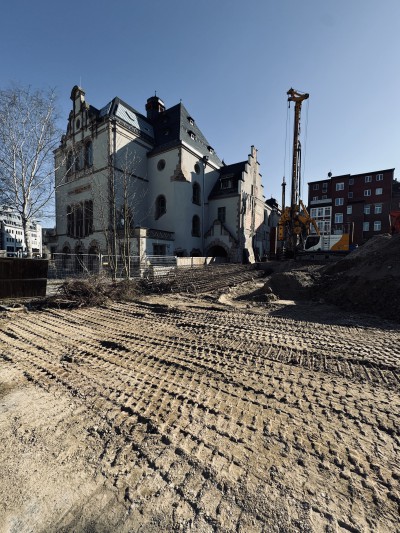 Die Rundbögen des Mittelrisalits des historischen Bestandsgebäudes bilden in einer zeitgenössischen Interpretation das Leitmotiv für die Kubatur des Neubaus und verweisen gleichzeitig auf die kunsthistorische Geschichte der Stadt Jena.