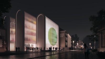 Der Neubau wird die beiden bauhistorischen Gebäude des Ensembles als eigenständiges Element verbinden, welches in seiner Gestaltqualität sowohl die Marke D.O.M. wiedergibt als auch an die optische Traditionen Jenas anknüpft. Dabei springt er respektvoll hinter dem Bestand zurück und lässt die Ecke frei, sodass der Baukörper der Optikerschule wahrnehmbar bleibt. Die Anmutung der Baukörper und der Fassade steht dabei im Geiste der Tradition der frühen Glasbaupioniere um Gustave Falconnier und Bruno Taut und repräsentiert mit seiner Formensprache und den eingesetzten modernen Bautechnologien die Aktualität und Zukunftsrelevanz des Museums. Die Staffelung der einzelnen Riegel des Neubaus erlaubt die Verbindung der beiden Bestandsgebäude ohne diese zu dominieren. Entsprechend der Nutzungen werden die Volumen hintereinander geschaltet, sodass eine sensible Staffelung von öffentlichen zu privaten Nutzungsflächen entsteht, während der Vorplatz gezielt geöffnet wird.