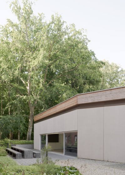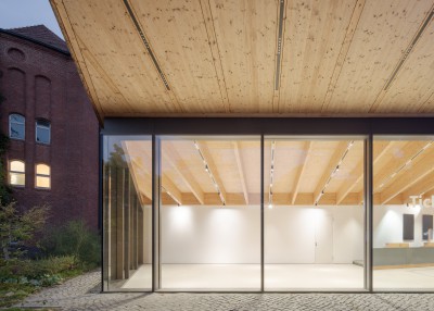 Durch die bewusste Vermeidung einer urban gegliederten Formensprache entsteht eine aufgelockerte Eingangssituation, in der Gebäude und Garten gleichberechtigt im Dialog stehen. Dabei wird eine neue Schwellensituation zwischen der Stadt, den teilöffentlichen Funktionen und dem Garten mit Museum gebildet über welche die einzelnen Bereiche betreten werden.