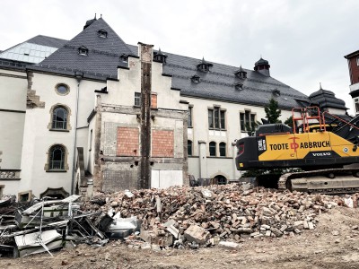 Die Rundbögen des Mittelrisalits des historischen Bestandsgebäudes bilden in einer zeitgenössischen Interpretation das Leitmotiv für die Kubatur des Neubaus und verweisen gleichzeitig auf die kunsthistorische Geschichte der Stadt Jena.
