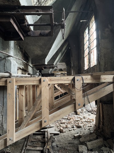 Die Wucht und Brutalität der zerfallenden Anlage wird dabei nicht bauzeitlich rekonstruiert, sondern konsequent in ihrem aktuellen Zustand gesichert und durch Einsatz zeitgemäßer Technologie (u.A. Augmented Reality) museal aufgearbeitet und im Rahmen der Bedeutung für die Stadtgeschichte thematisiert - das Gebäude als Maschine mit all seinen Rissen und Narben ist zentrales Exponat.